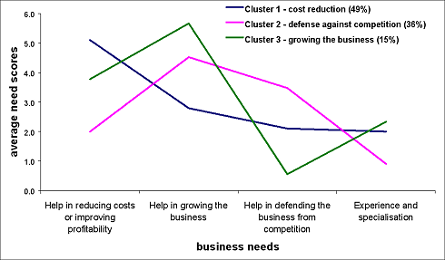 Its main advantage is that it can suggest, based on complex input, groupings that would not otherwise be apparent ie the needs of specific groupings or segments in the market.