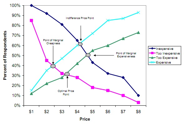 - Underlying the entire method is the concern that the questions directly ask respondents what they would be willing to pay for a product. Several researchers believe, however, that in order to be more effective, questions should focus on behavior rather than price. Additionally, these consumer-defined prices may not correspond with the actual range of acceptable product prices.