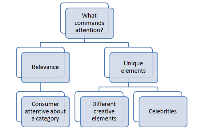 I’ve put celebrities and unique creative elements under one category because they are good in commanding attention. But they are not enough. Only uniqueness in the creative will help consumers remember the advertisement, but consumers will not remember the brand of the advertisement.