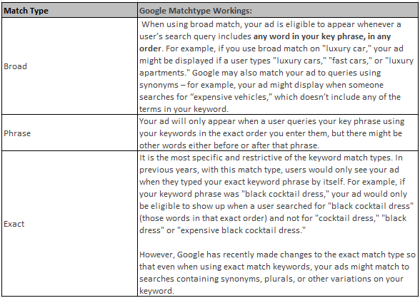 Match Types can have a major impact on your ad’s performance: match types is what that determines exactly which search queries you’re bidding for. As you determine which match types to use for each keyword, there are a few key components to consider: