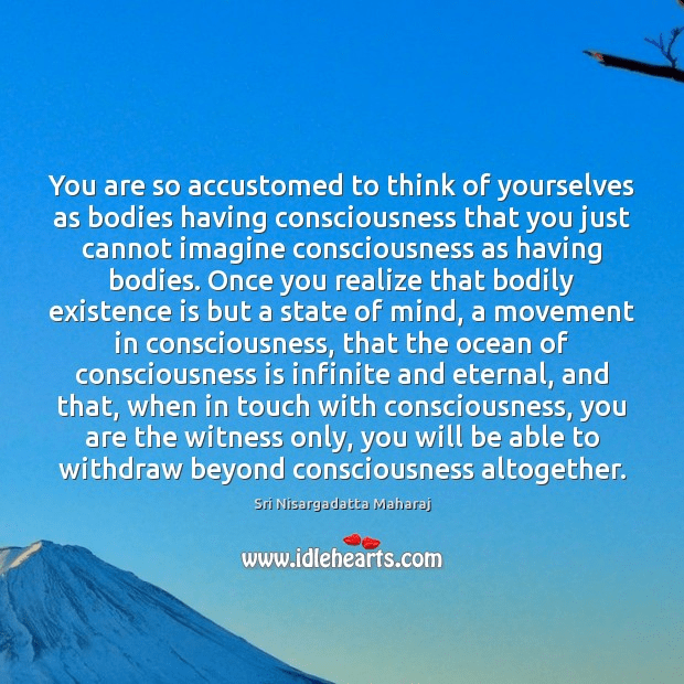 What the realized are saying is not that you shouldn’t feel the pain when you pinch yourself or that the body you’re seeing is not your body and you have to become ether. What they’re saying is this: the pain you feel when you pinch yourself on your skin is what you feel in your mind. What it means is that: the experience of the pain actually happens in your mind. And similarly all knowns including the “I, the body” known happens in the mind. So, who you think yourself to be “the I” is actually a thought in your mind.